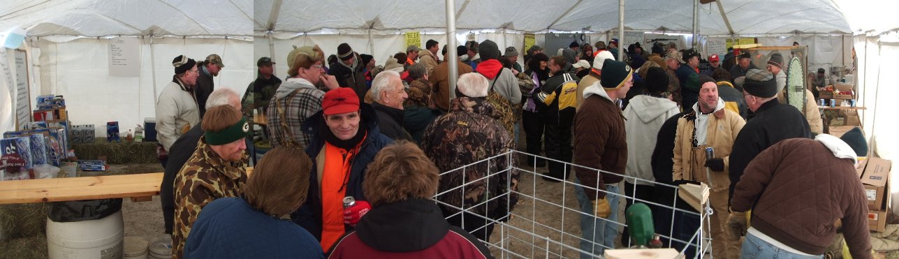 Warming up inside the big white tent